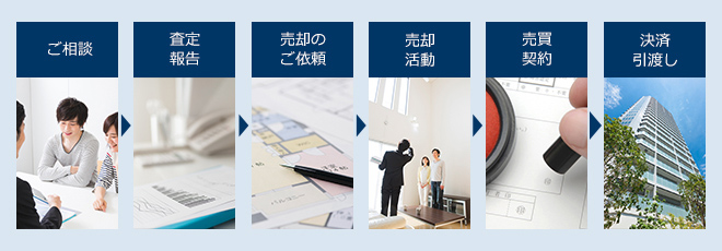 ご売却のおおまかな流れは上記の通りですが、STEPごとに分かりやすくアドバイスさせて頂きます。